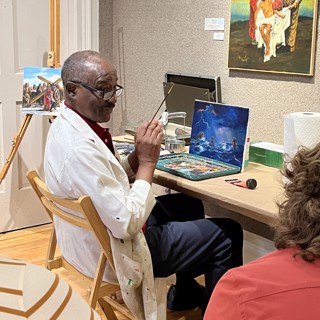 James Conner held a painting demo in the gallery where he discussed his techniques with acrylic and his inspiration behind faith based paintings! Read below for more photos.
